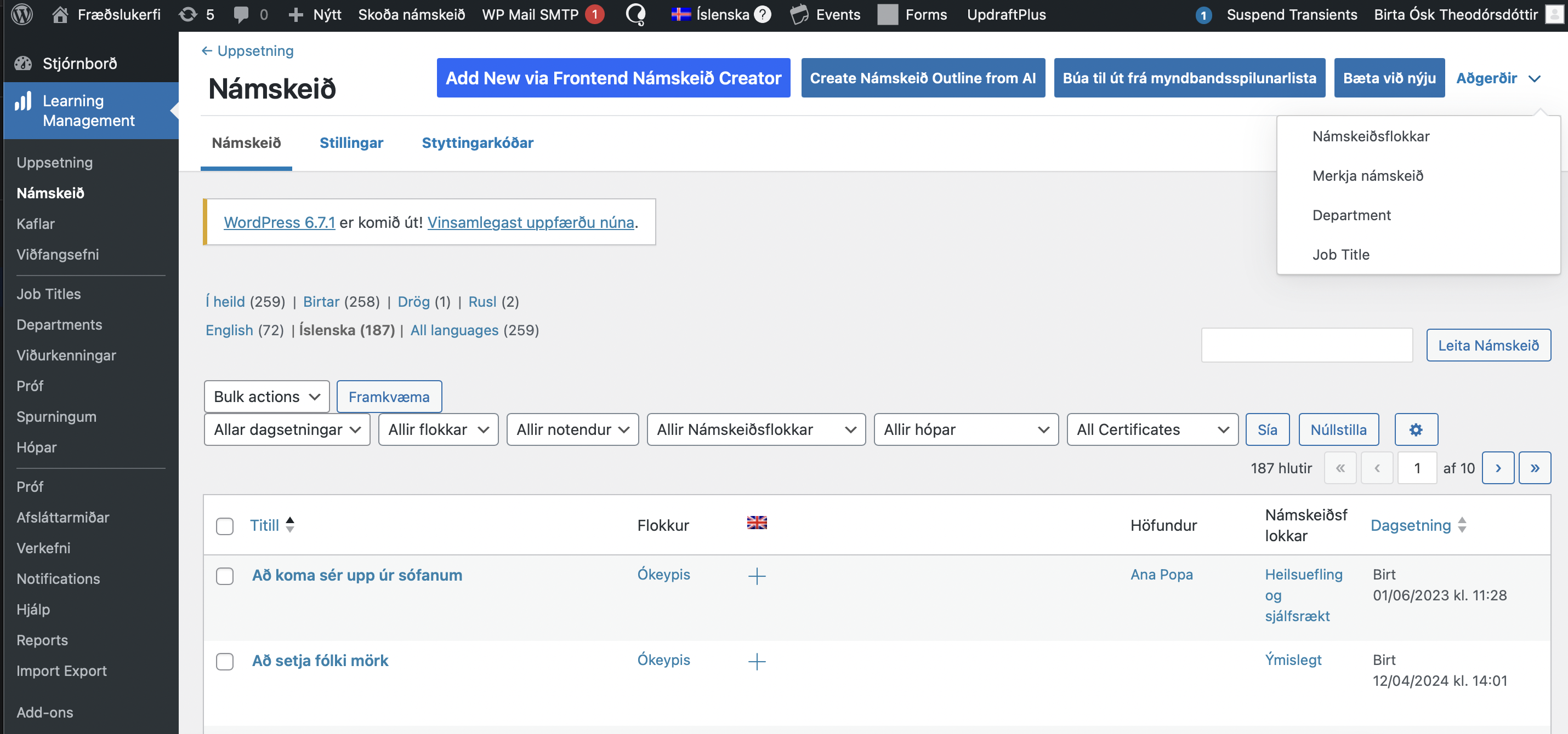 Námskeiðsflokkur birtist ekki í framenda fyrr en búið er að setja námskeið inn í eftirfarandi flokk!