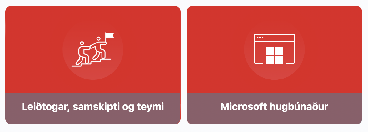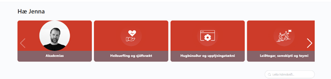 Við mælum með að myndin sé einföld og án texta, þar sem heiti námskeiðsflokksins mun birtast fyrir neðan myndina. Hér er dæmi um námskeiðsflokk frá Akademias, þar sem að myndin er hvítt tákn á rauðum bakgrunni, og heiti flokksins birtist fyrir neðan.