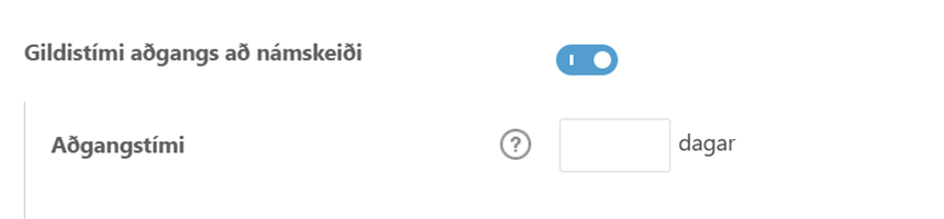 Gildistími aðgangs að námskeiði: Með aðgangstíma getur þú valið að veita aðgang að námskeiði í takmarkaðan tíma, byggt á dagsetningu skráningar (dagsetning þegar þeir skráðu sig í námskeiðið).