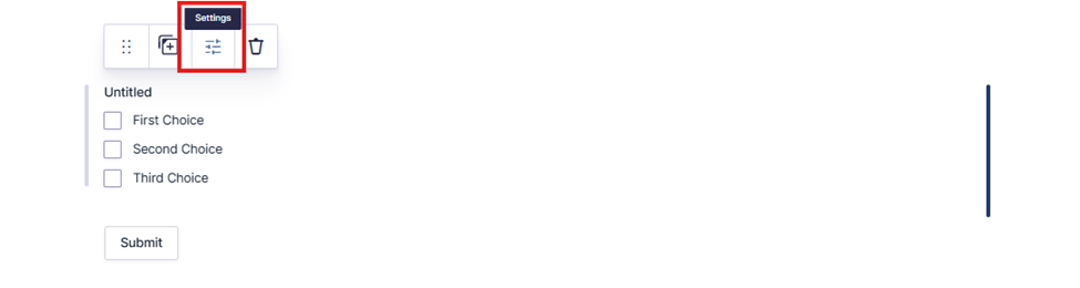 Og svo er ýtt á «settings» og þá opnast «field settings» og þá er hægt að breyta heitinu og valmöguleikunum.