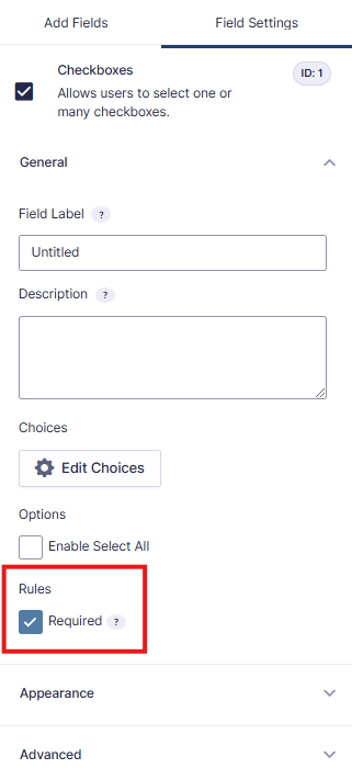 Ef notandinn á að fylla út allt í tékklistanum þá er farið í “settings” á hverjum hluta inni í tékklistanum og undir “field settings” er hakað í “required”