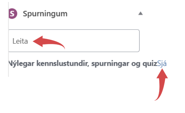 • Finna má í reitnum „Spurningar“ í hliðarstikunni